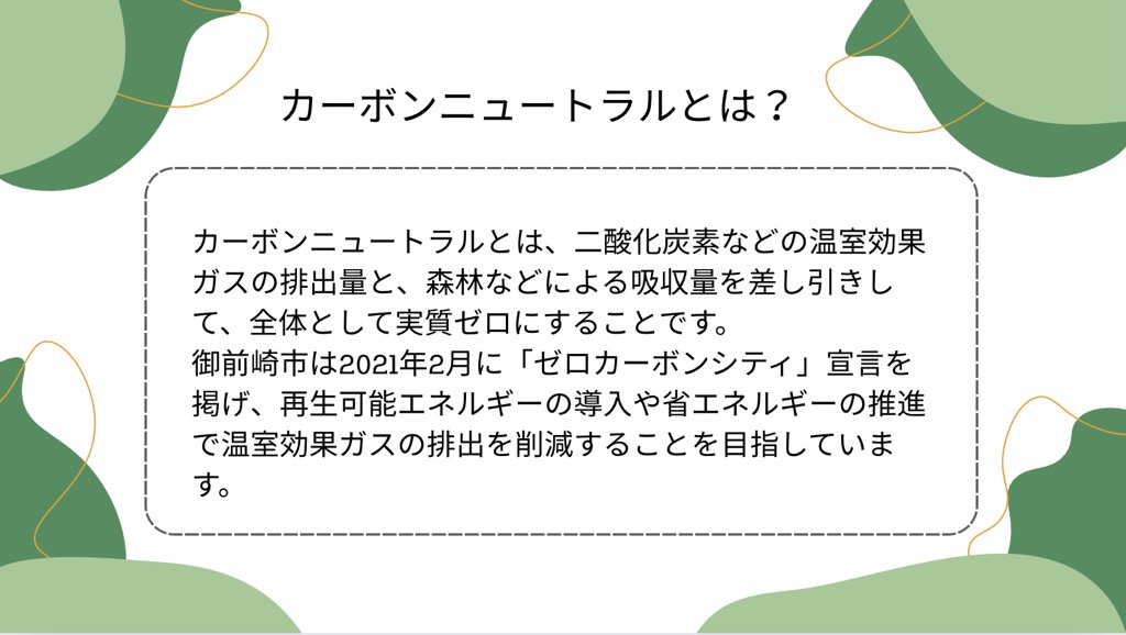 vol.8(カーボンニュートラルとは?) 【ちょこっと豆知識】 ニュートラル「neutral」は「中立」という意味。 つまり「CO2排出をゼロにする」のではなく、「出した分を吸収・削減して帳尻を合わせる」という考え方。 更新日:2025年10月30日