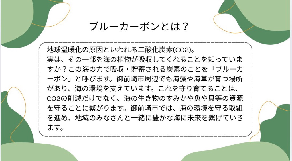 御前崎市では、海の力を活かした「ブルーカーボン造成事業」を令和7年度から実施しています。