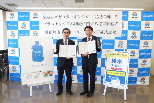 市とウォータスタンド株式会社「SDGs×ゼロカーボンシティ実現に向けたプラスチックごみ削減に関する協定」を締結し、地球温暖化問題や海洋プラスチックごみ問題などの社会解決に向け取り組みを進めていきます。